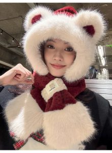 Fox Ear Plush Hat Scarf